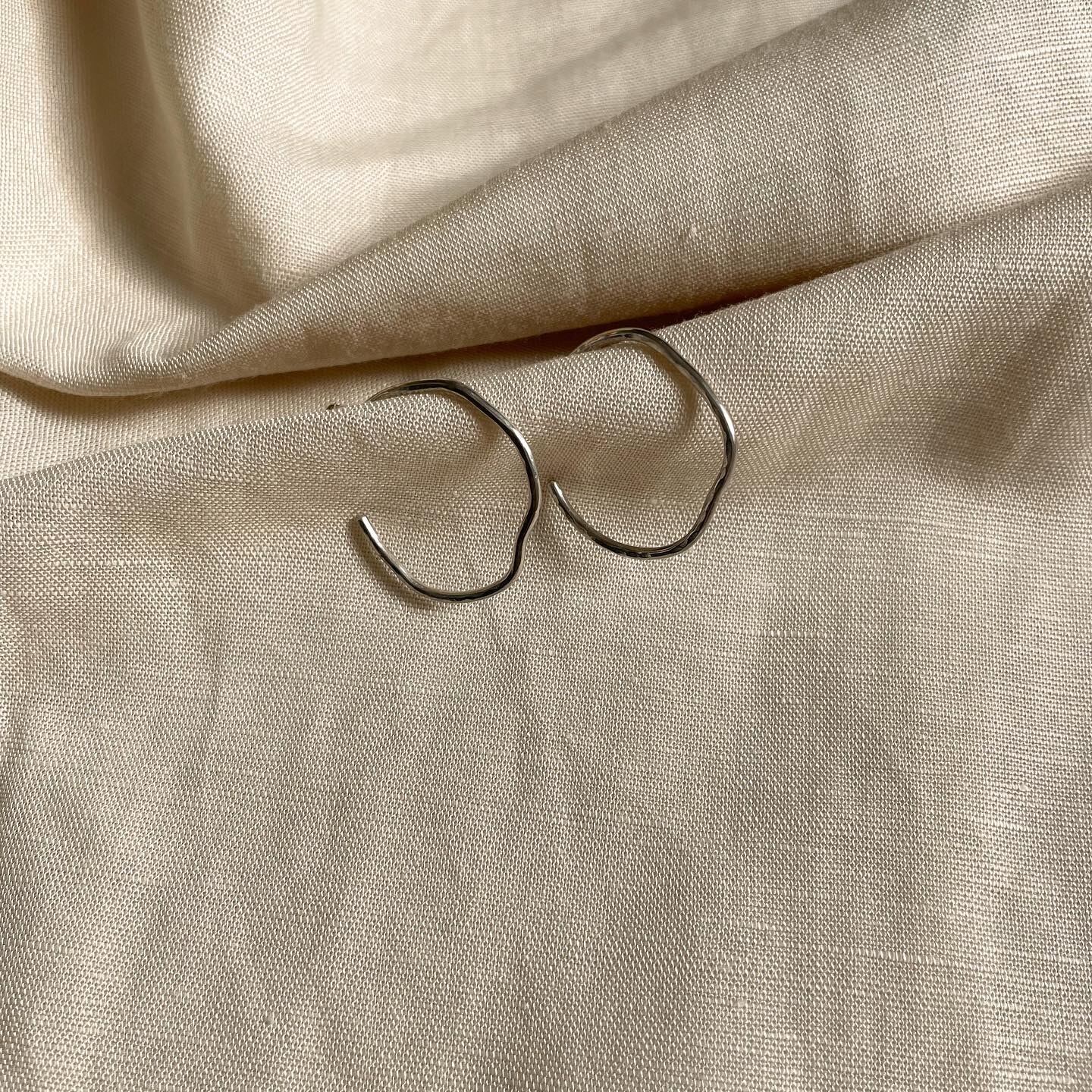 描いたようなラインが特徴の大きめのフープピアスです。